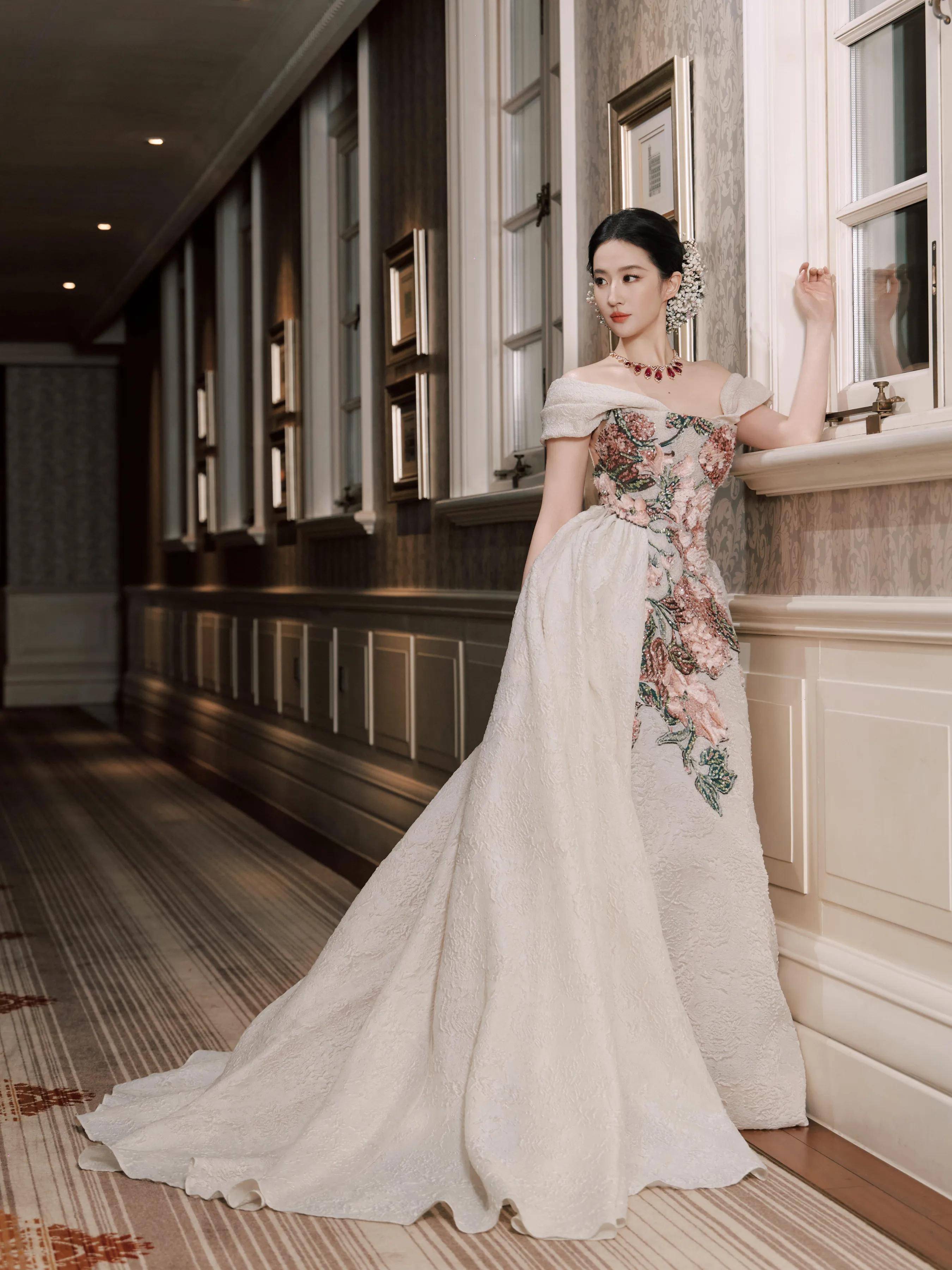 刘亦菲出发照是在一间复古的房间里拍的,她穿着白色繁花高定礼服躺在床上,姿势慵懒,眼神迷人,眼前的她美极啦。女娲确实很偏心,刘亦菲的五官精致,每个角度都很美。