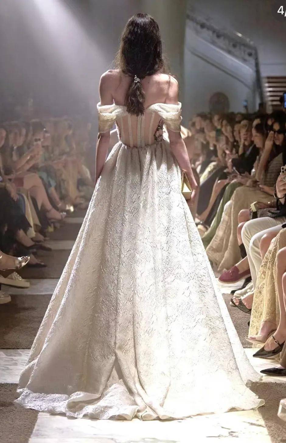 刘亦菲身穿Elle saab繁花高定礼服出席Vogue盛典,这条裙子是鱼骨设计,显得她的腰很细,她肩颈像白天鹅一样挺拔。刘亦菲在头上戴上了满天星作为头饰,这个盘发发型太美了,简直和她小时候的艺术照一模一样,她现实里也是白秀珠一样的富家千金啊!